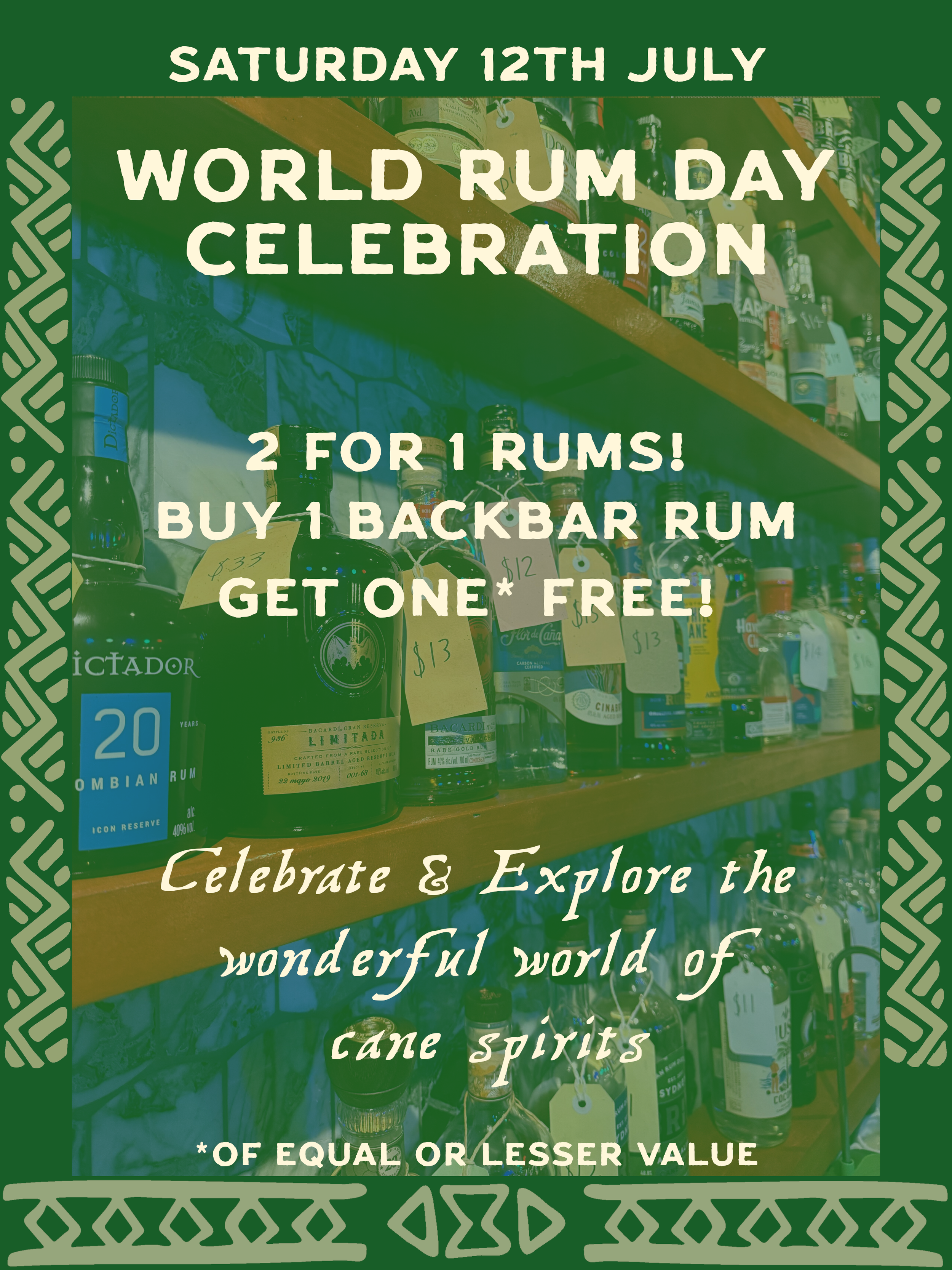 Saturday the 12th is World Rum Day! a celebration of that magnificent spirit of sugar cane. From Agricole to Blackstrap, it’s a wide and wild world of spirits, so what better day to jump in and discover some new favourite drops, or appreciate some old favourites.